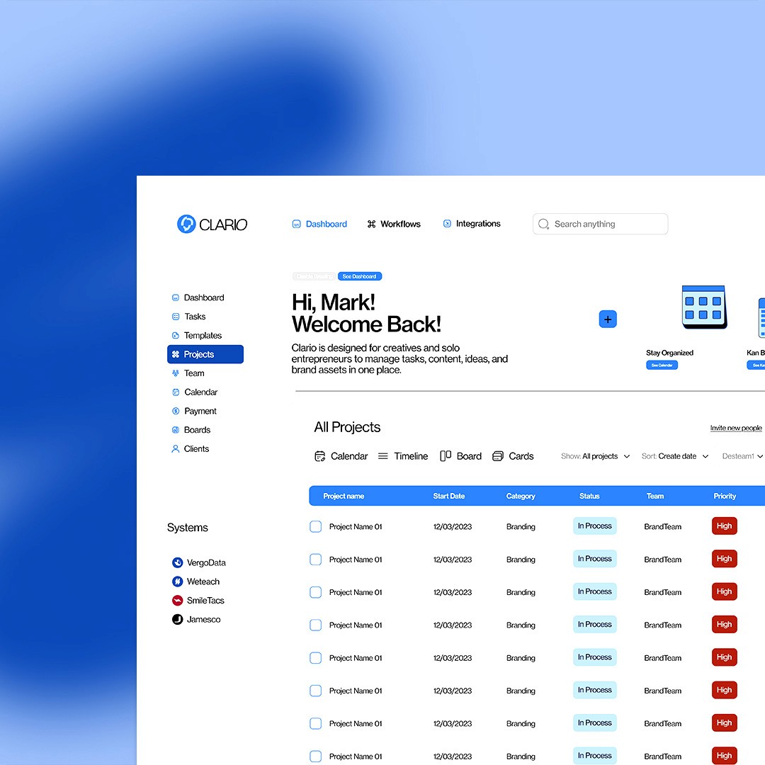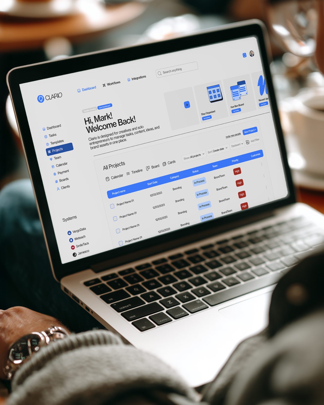 Minimal productivity dashboard for creatives to organize tasks, content, and brand assets in one clean, distraction-free workspace. Built for speed, clarity, and creative flow